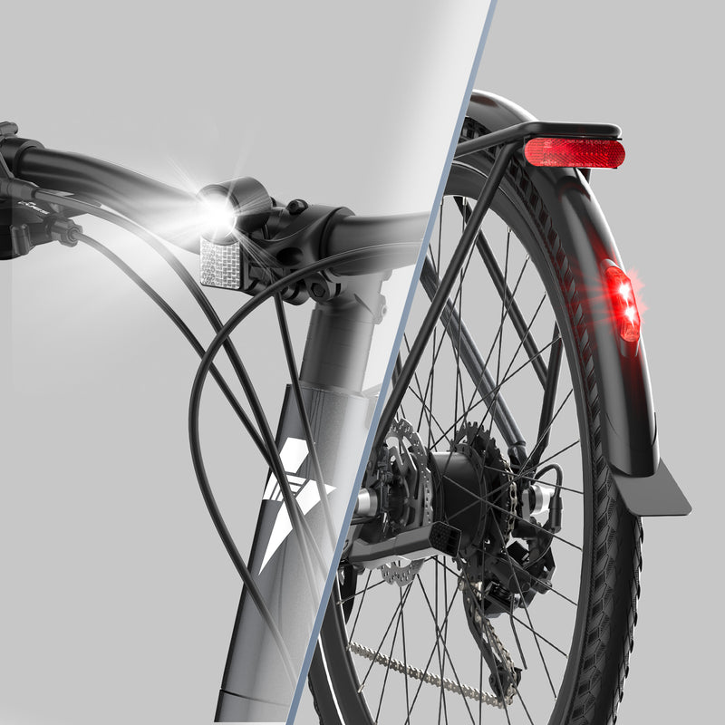 Kör säkrare: StVZO-kompatibelt framljus och bakre bromsljus förbättrar synligheten och säkerheten under alla förhållanden.