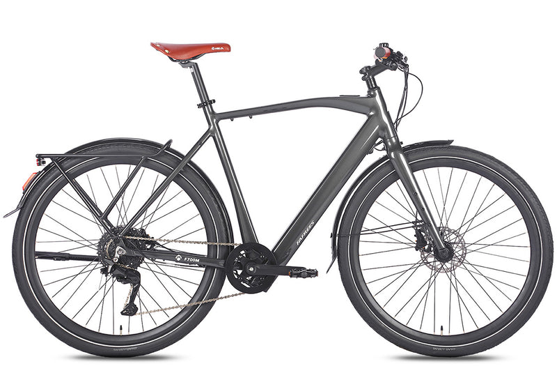F700-serien är elegant och effektiv och har en lätt aluminiumram på 19,5 kg, dolt batteri, vridmomentsensor och Shimano CUES 9-växlad växel. Perfekt för smidiga, pålitliga stadsturer.