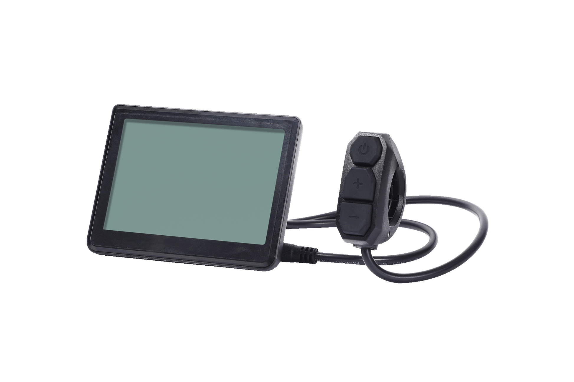 Utrustad med styrets fästklämma och anslutningskabel.