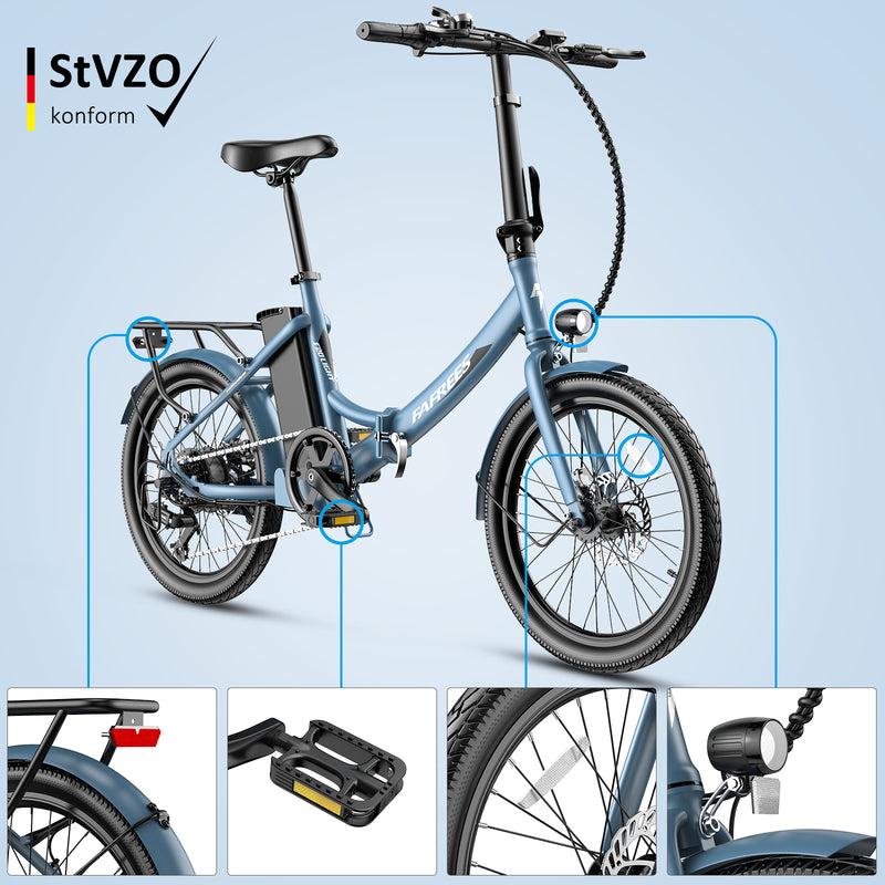Den kompakta och mångsidiga F20 Light har en 250 W-motor, ett stort 16,75 Ah-batteri, 20-tumsdäck och en hopfällbar genomgående ram.