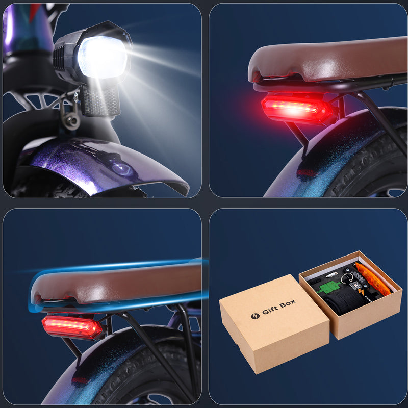 Viktiga tillbehör ingår: Levereras med framljus, bakre bromsljus och en robust pakethållare för daglig bekvämlighet.