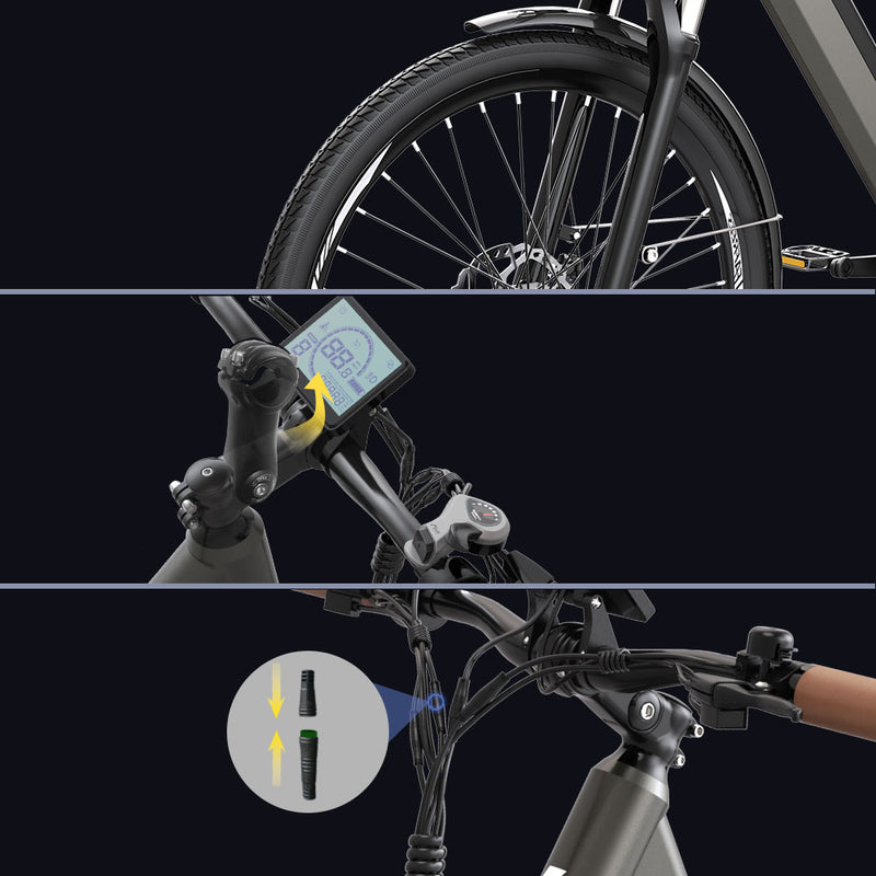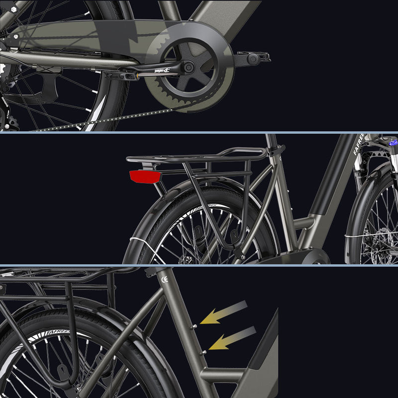 Komfort möter elegans, F26 Pro kombinerar en snygg step-through-ram, kraftfull assistans och integrerade funktioner