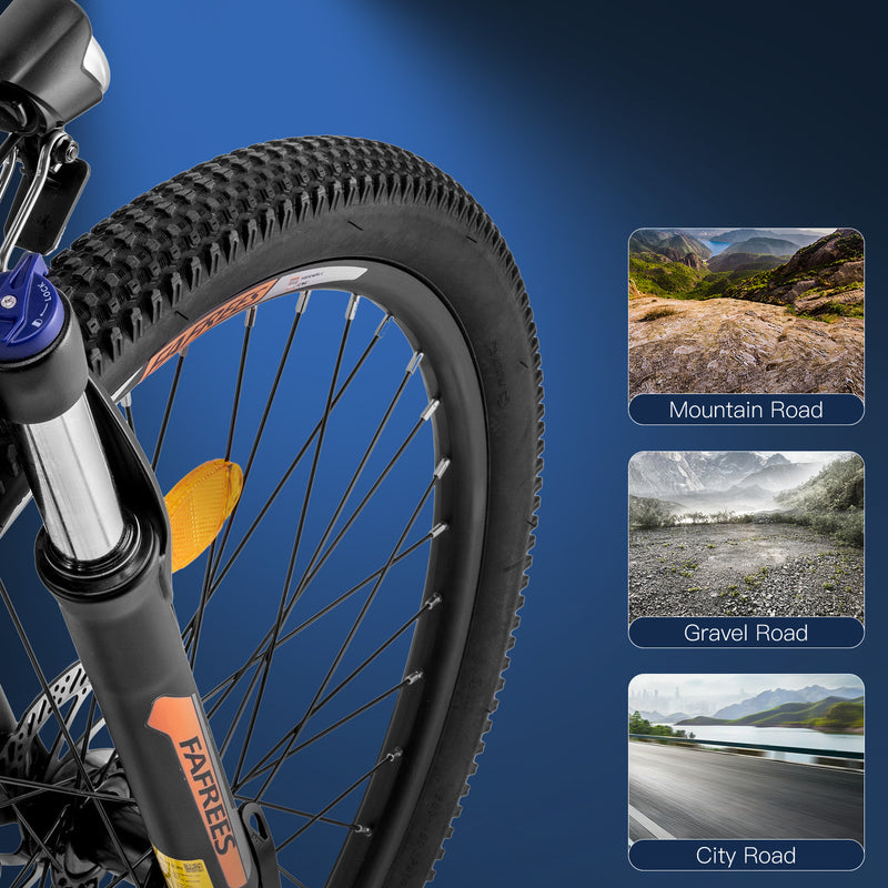 Brett växlingsområde för att enkelt kunna klättra uppför backar eller köra på stadsvägar.Fjädringsgaffel
